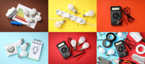 Collage of photos of different electrician tools